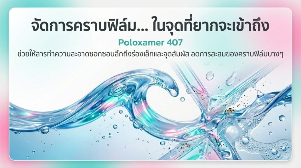 Poloxamer 407 (ตัวช่วยกระจายตัวและชะล้างคราบบนอุปกรณ์ในช่องปาก)