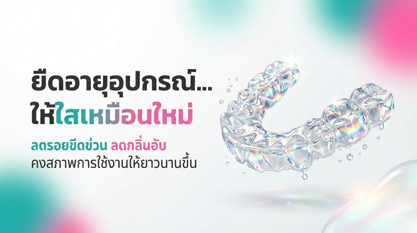 เคยไหม… ใส่รีเทนเนอร์หรือฟันปลอมแล้วรู้สึก “ไม่ค่อยสดชื่น” ทั้งที่ล้างน้ำแล้ว? หลายคนเจอปัญหา คราบสะสมตามซอกมุม กลิ่นอับจากความชื้น หรือชิ้นงานเริ่มหมอง เพราะใช้งานทุกวันแต่ทำความสะอาดไม่ทั่วถึง โดยเฉพาะวันที่เร่งรีบ—สุดท้ายก็ได้แค่ล้างผ่าน ๆ แล้วเก็บเข้ากล่อง ทำให้ ความชื้นและคราบสะสมต่อเนื่องแบบไม่รู้ตัว
